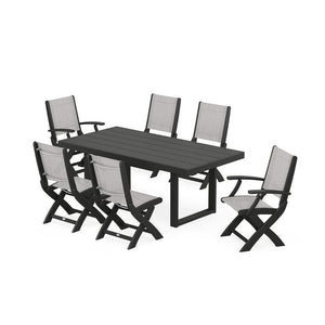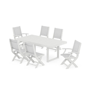 POLYWOOD® - Coastal Folding Chair 7-Piece Dining Set with Trestle Legs - PWS871
