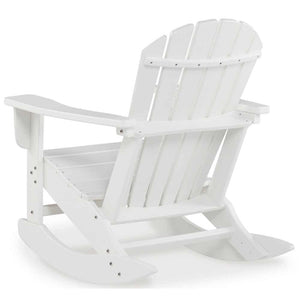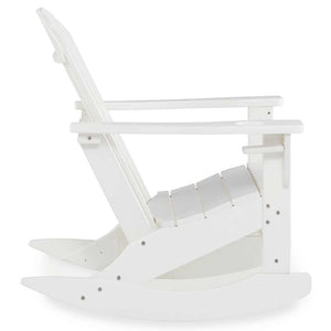 Add cottage-quaint charm to your outdoor oasis with the Sundown Treasure rocking chair in blue. Made of MEGA-TUFF™ high-density polyethylene material, it’s sure to weather the seasons beautifully. Designed to shed rainwater, the chair’s slatted styling and classic Adirondack design provide exceptional form and function.