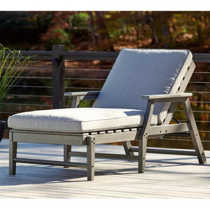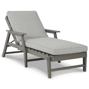 It’s the dawn of a new day for gray. Embrace the style trend with the Visola outdoor chaise lounge chair. Crafted of MEGA-TUFF® HDPE material, it combines the exceptional durability and weather resistance you need with the “wood look” you love. This comfortably cushioned chaise with an adjustable lay-flat backrest takes outdoor living to a whole new level. Rest assured, the thick seat and back cushions are wrapped in our exclusive Nuvella® high-performance fabric that’s fade-resistant, stain-resistant and a breeze to clean.