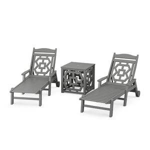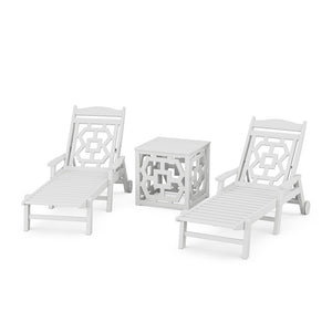 POLYWOOD® Chinoiserie 3-Piece Chaise Set with Umbrella Stand Accent Table - PWS2435-1