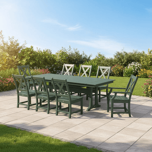 POLYWOOD® Braxton 9-Piece Farmhouse Dining Set with Trestle Legs PWS1433-1