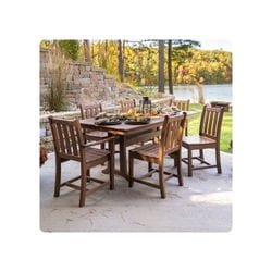 Classic chair style celebrates time-honored designs.  Seats 2; seating tucks neatly under table when not in use.  Slatted tabletop features 1.625" umbrella hole and thin gaps for water drainage.  Withstands storms and strong winds; low-maintenance and easy to clean.  These enduring designs balance classic style with supportive, stay-all-day comfort, encouraging lingering conversations and more meals alfresco. Ideal for smaller gatherings, the Vineyard 3-Piece Dining Set includes a square dining table and two armchairs. We'll raise a glass to that.