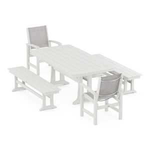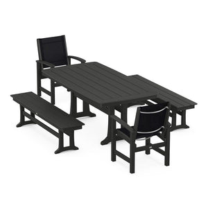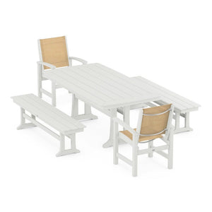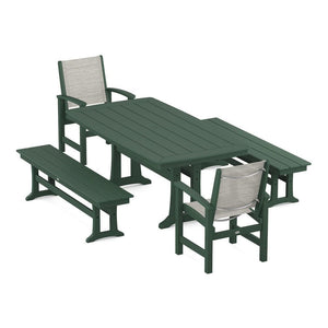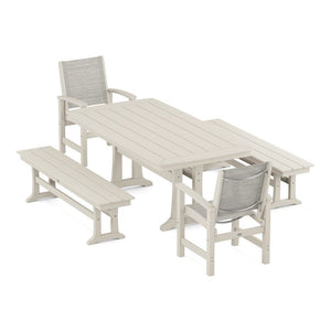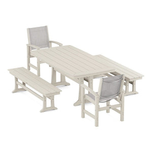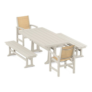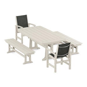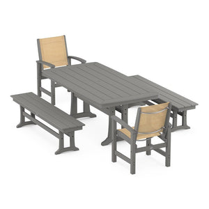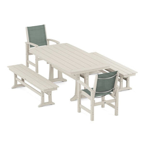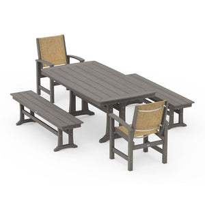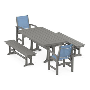 POLYWOOD® - Coastal 5-Piece Dining Set with Trestle Legs and Benches - PWS1036
