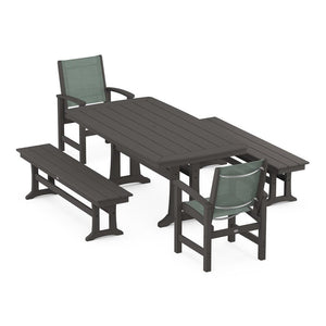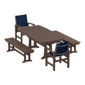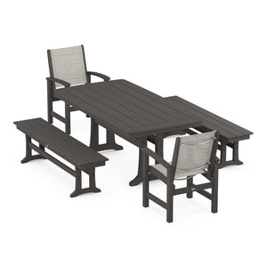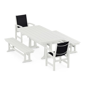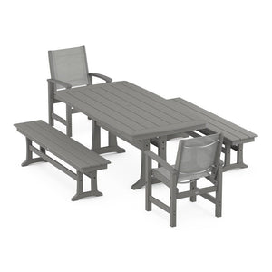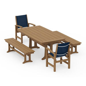 POLYWOOD® Coastal 5-Piece Dining Set with Trestle Legs and Benches