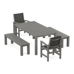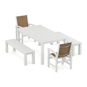 POLYWOOD® - Coastal 5-Piece Parsons Dining Set with Benches - PWS2277