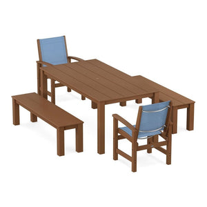 POLYWOOD® Coastal 5-Piece Parsons Dining Set with Benches