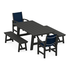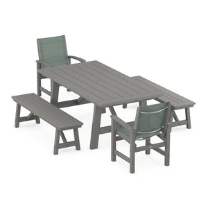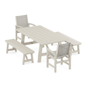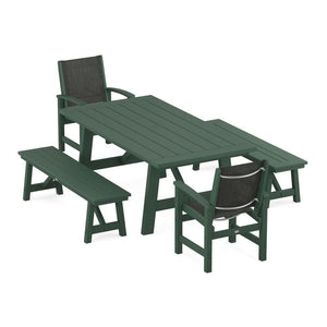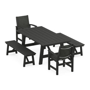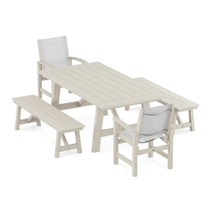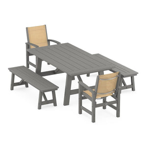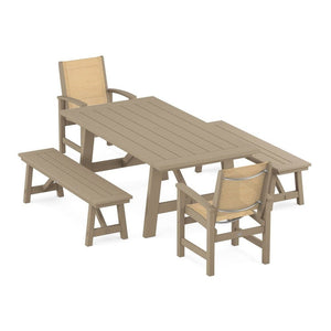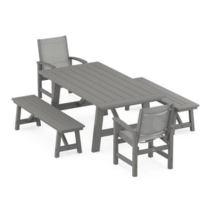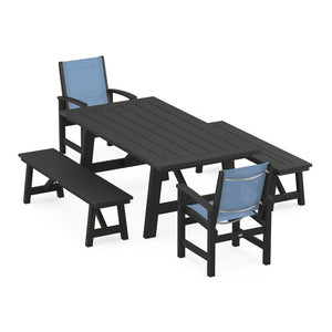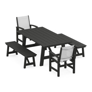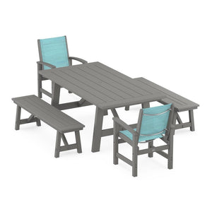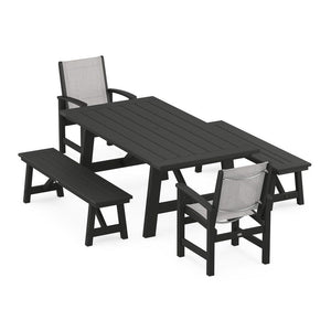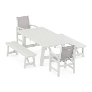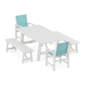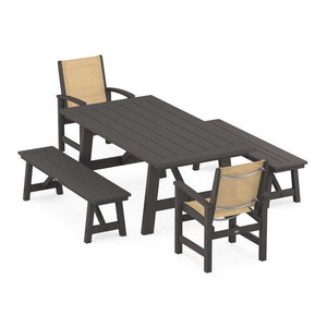POLYWOOD® Coastal 5-Piece Rustic Farmhouse Dining Set With Benches