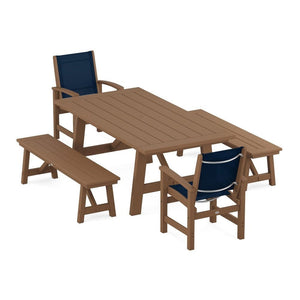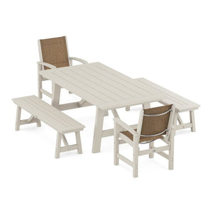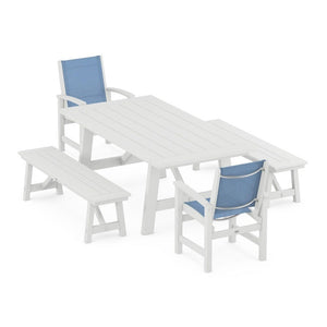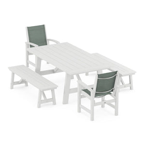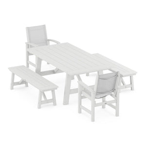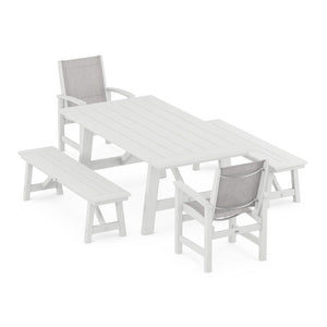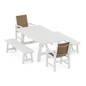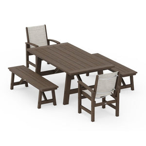 POLYWOOD® - Coastal 5-Piece Rustic Farmhouse Dining Set With Benches - PWS1077
