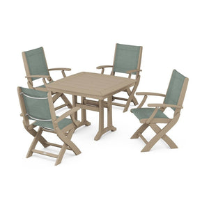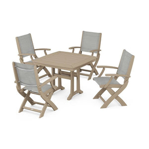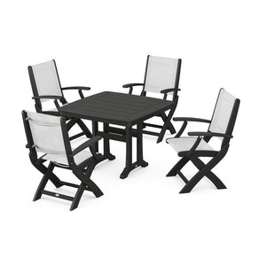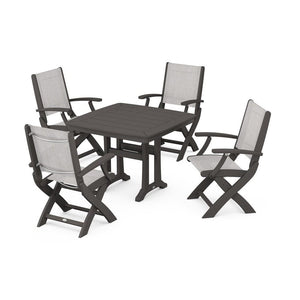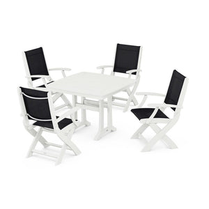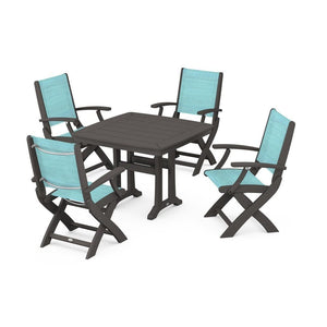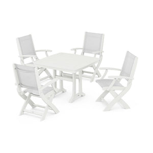POLYWOOD® Coastal Folding Chair 5-Piece Dining Set with Trestle Legs