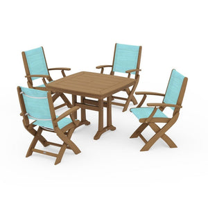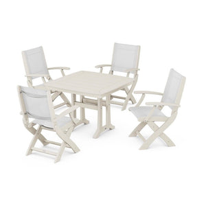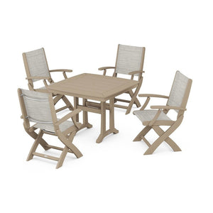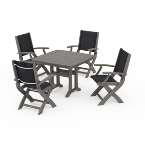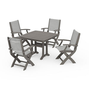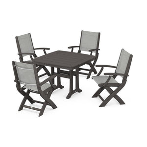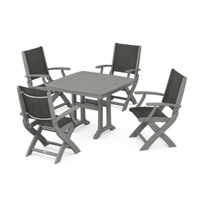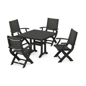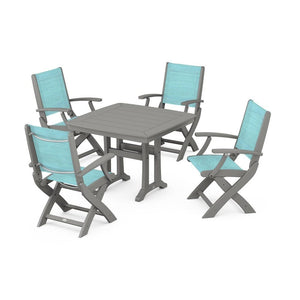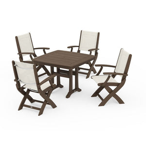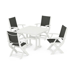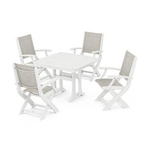 POLYWOOD® - Coastal Folding Chair 5-Piece Dining Set with Trestle Legs - PWS967