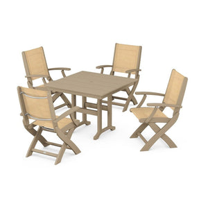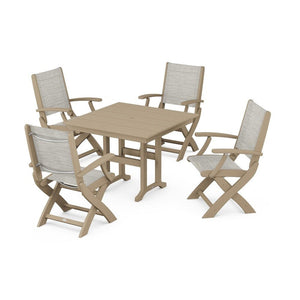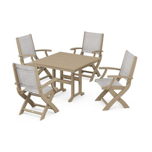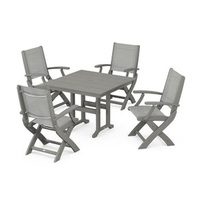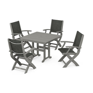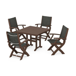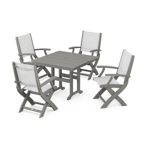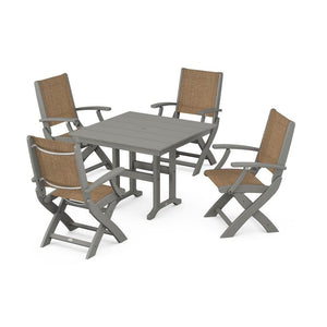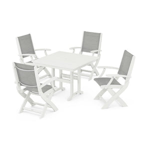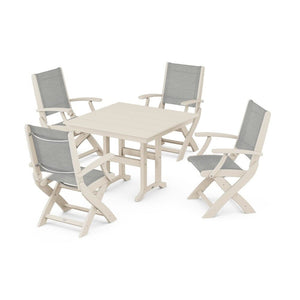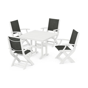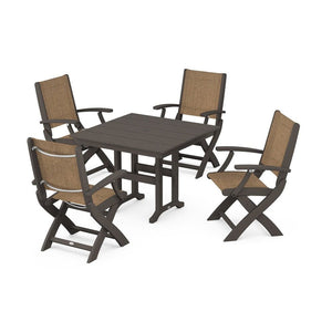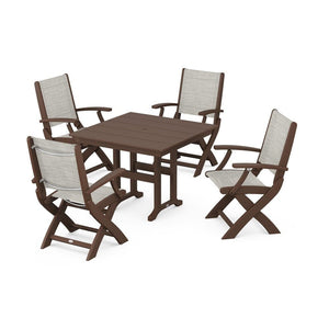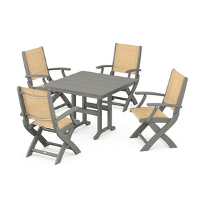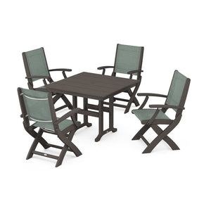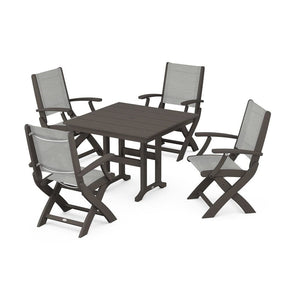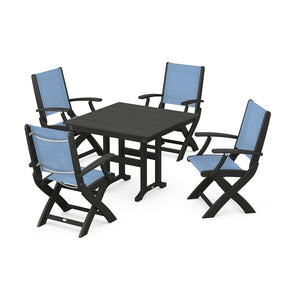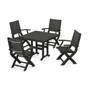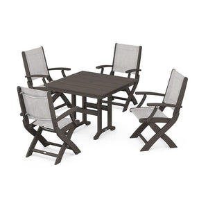 POLYWOOD® Coastal Folding Chair 5-Piece Farmhouse Dining Set