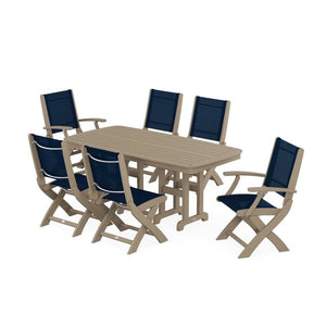 POLYWOOD® Coastal Folding Chair 7-Piece Dining Set