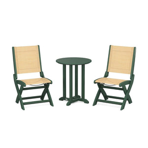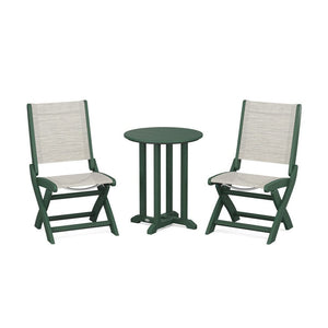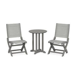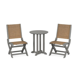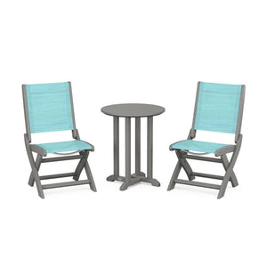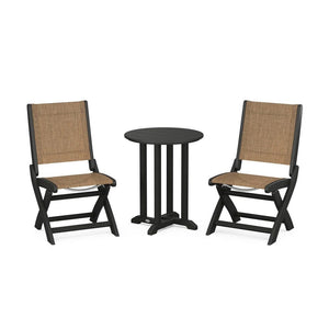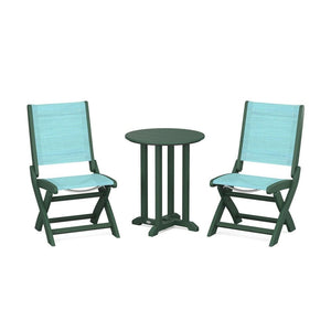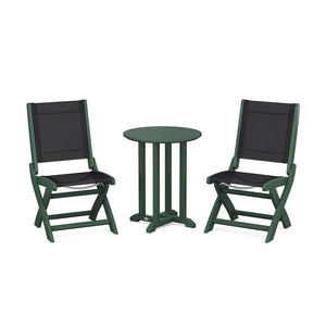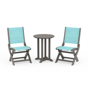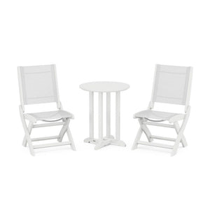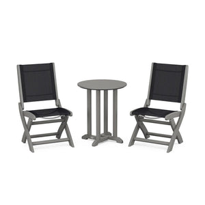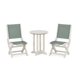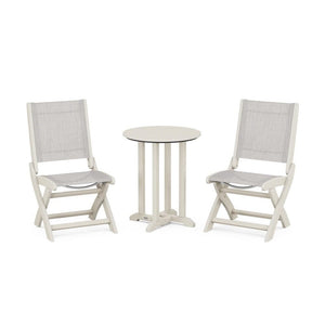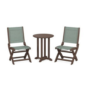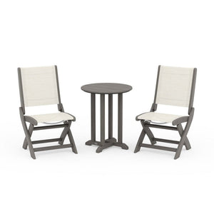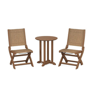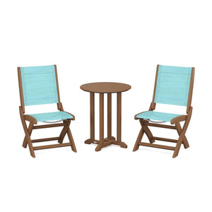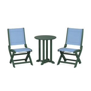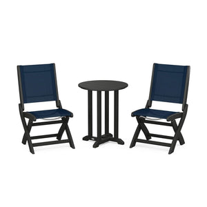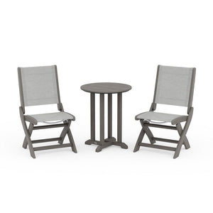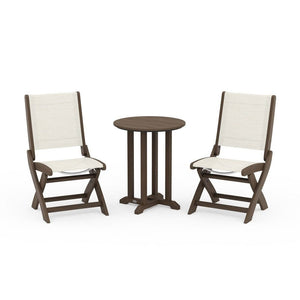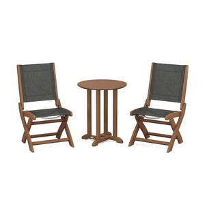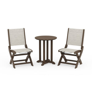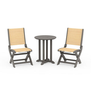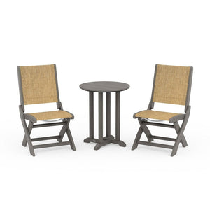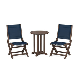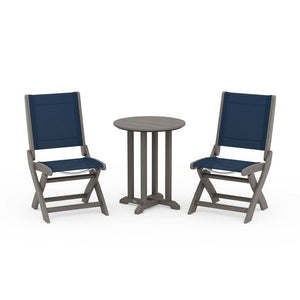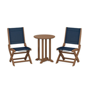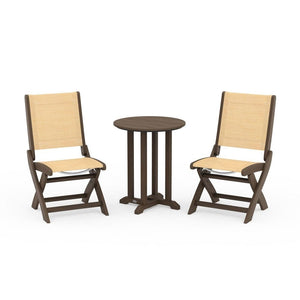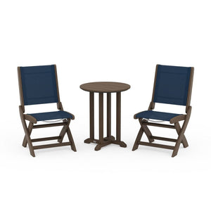 POLYWOOD® Coastal Folding Side Chair 3-Piece Round Bistro Dining Set