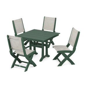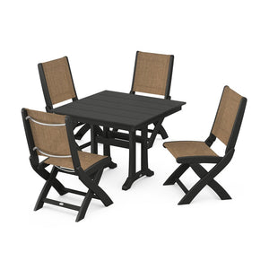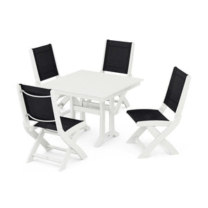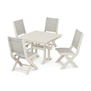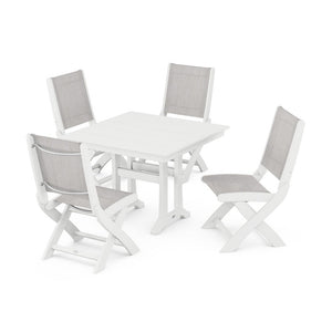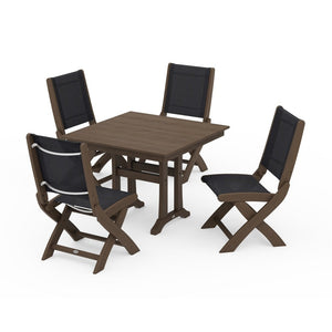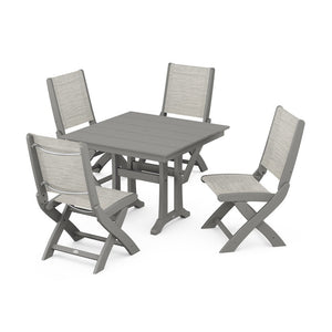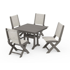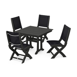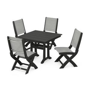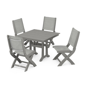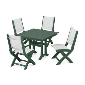 POLYWOOD® - Coastal Folding Side Chair 5-Piece Farmhouse Dining Set With Trestle Legs - PWS946