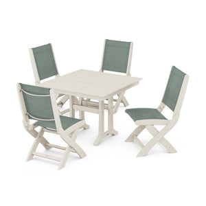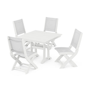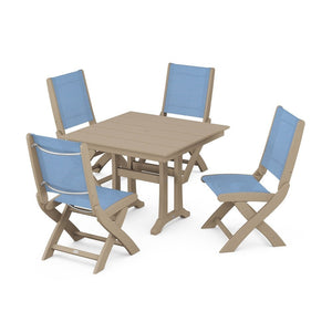 POLYWOOD® Coastal Folding Side Chair 5-Piece Farmhouse Dining Set With Trestle Legs