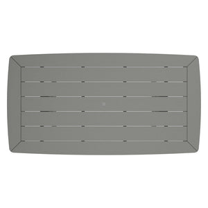 • Slatted tabletop features 1.625" umbrella hole and thin gaps for water drainage