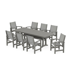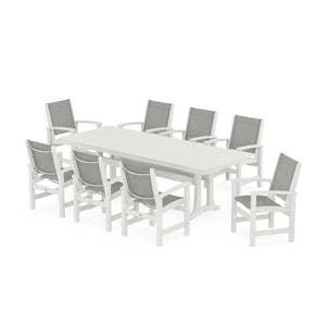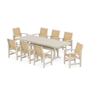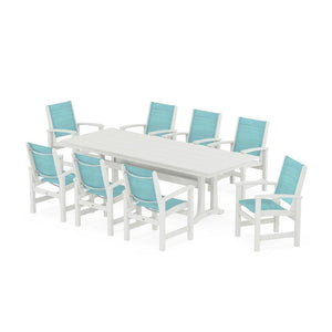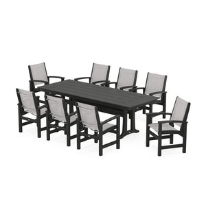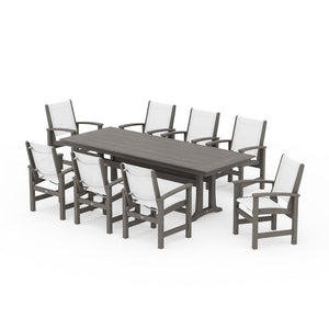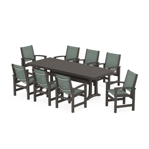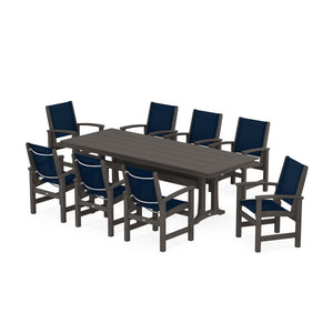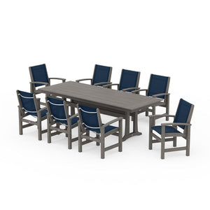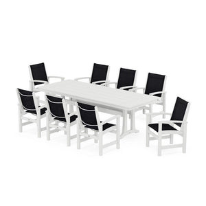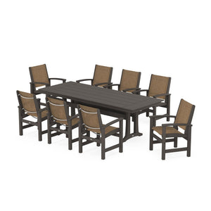 POLYWOOD® Coastal 9-Piece Farmhouse Dining Set with Trestle Legs