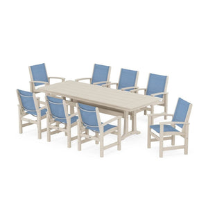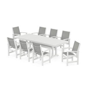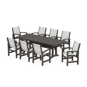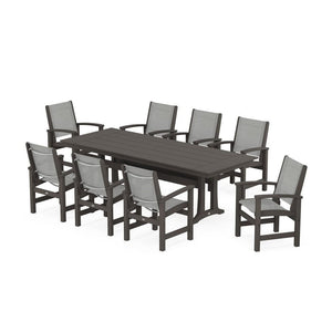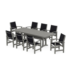 POLYWOOD® Coastal 9-Piece Farmhouse Dining Set with Trestle Legs