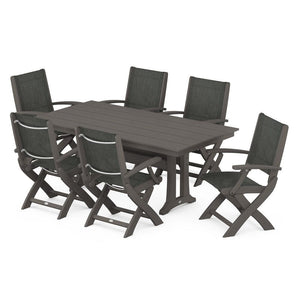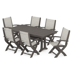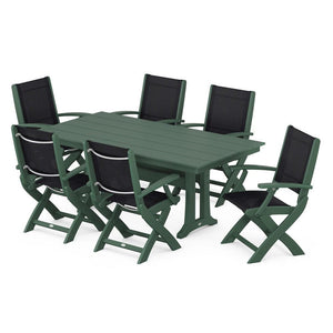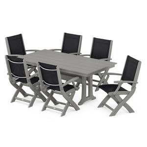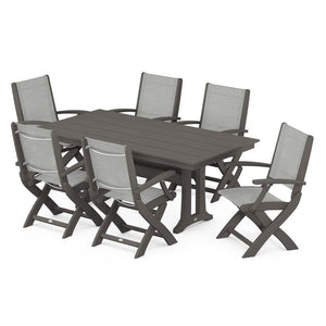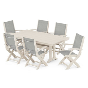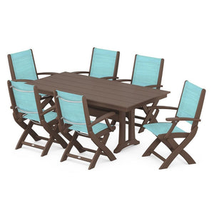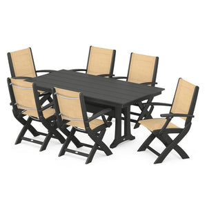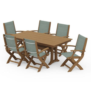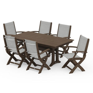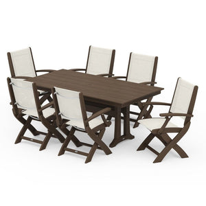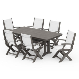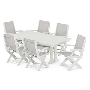 POLYWOOD® - Coastal Folding Arm Chair 7-Piece Farmhouse Dining Set with Trestle Legs - PWS292