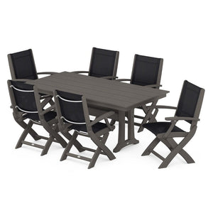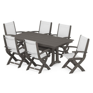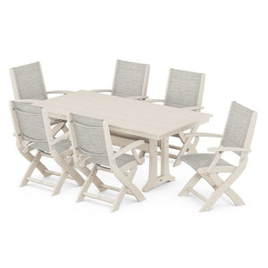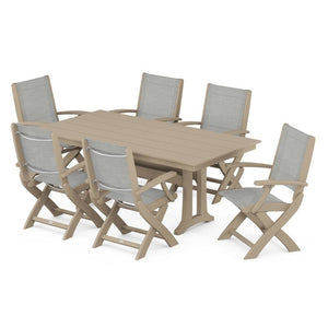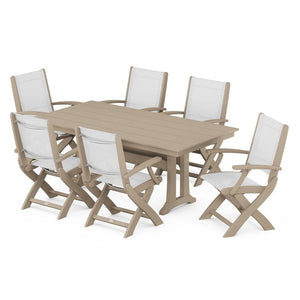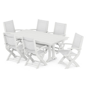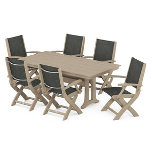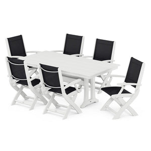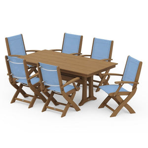 POLYWOOD® Coastal Folding Arm Chair 7-Piece Farmhouse Dining Set with Trestle Legs