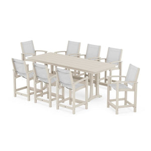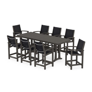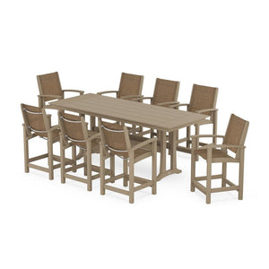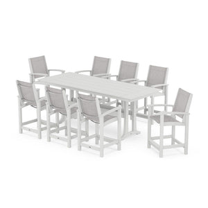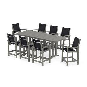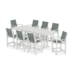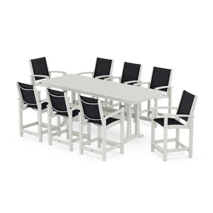 POLYWOOD® Coastal 9-Piece Farmhouse Counter Set with Trestle Legs