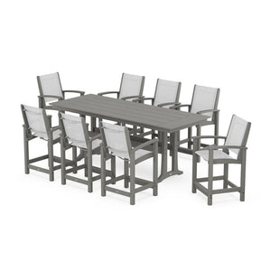 POLYWOOD® - Coastal 9-Piece Farmhouse Counter Set with Trestle Legs - PWS1898