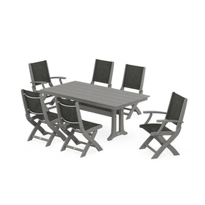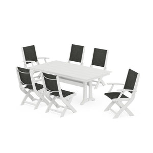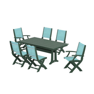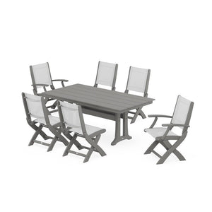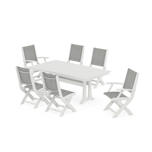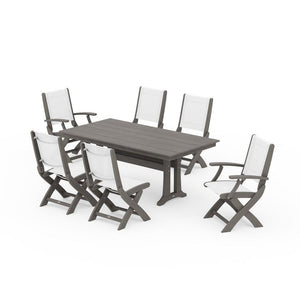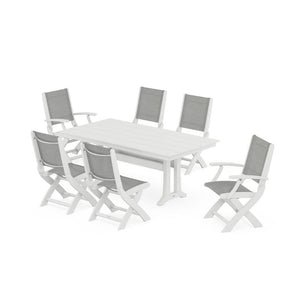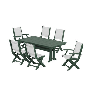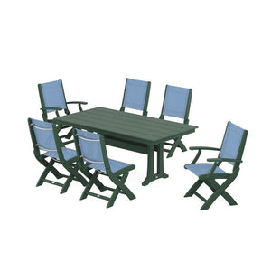 POLYWOOD® - Coastal Folding Chair 7-Piece Farmhouse Dining Set with Trestle Legs - PWS1001