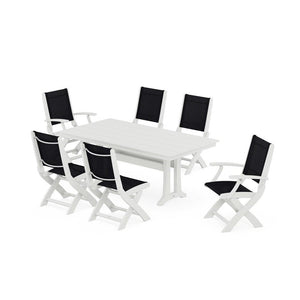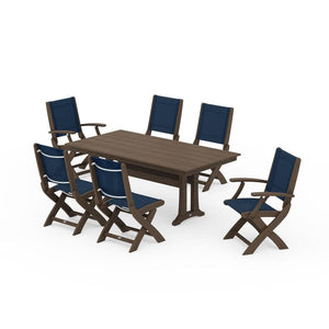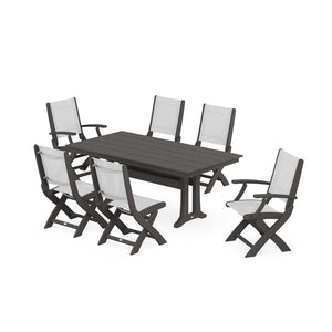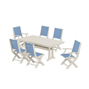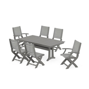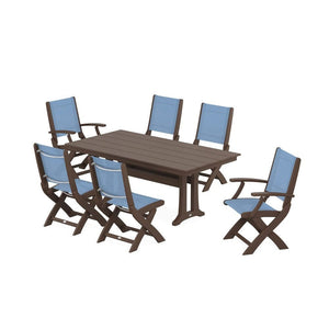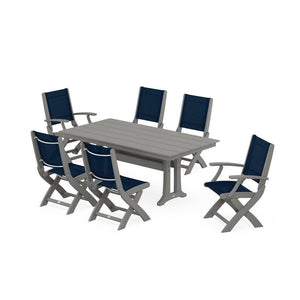 POLYWOOD® Coastal Folding Chair 7-Piece Farmhouse Dining Set with Trestle Legs