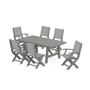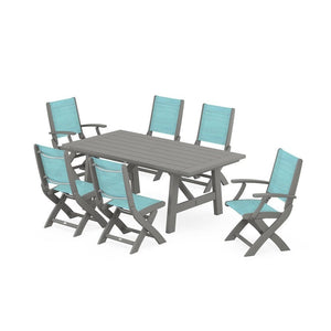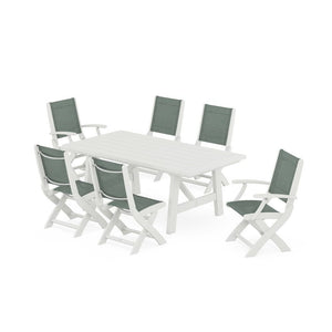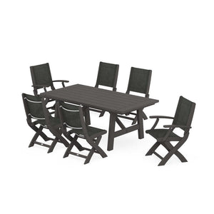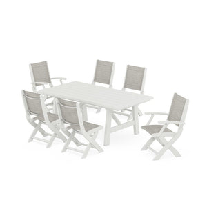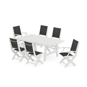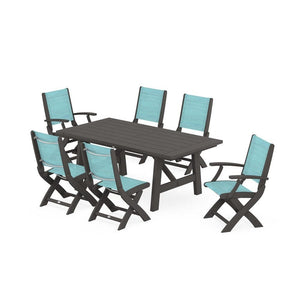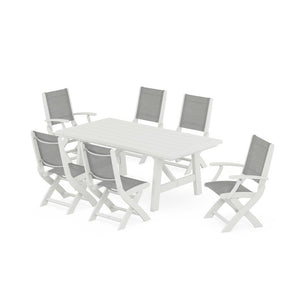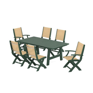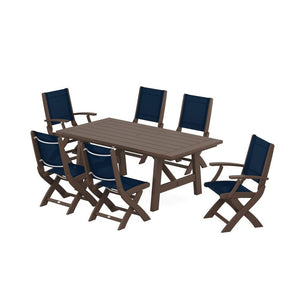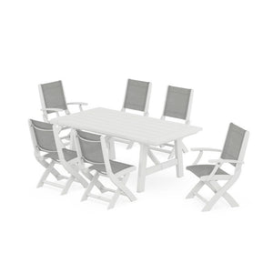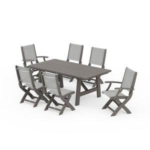 POLYWOOD® Coastal Folding Chair 7-Piece Rustic Farmhouse Dining Set