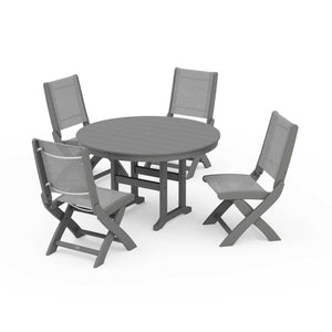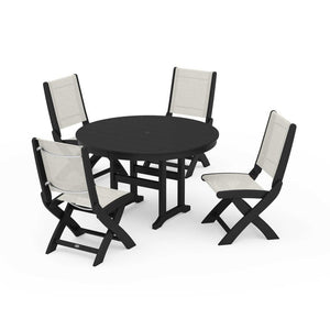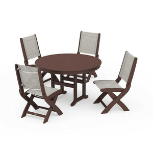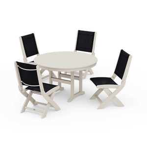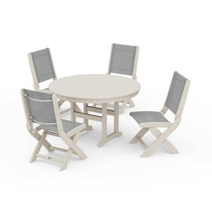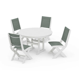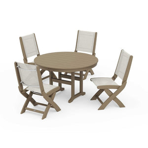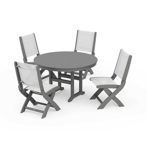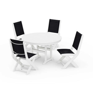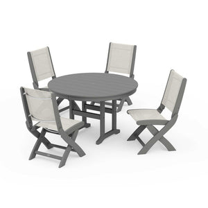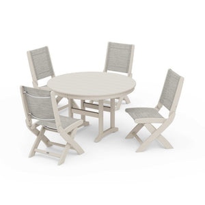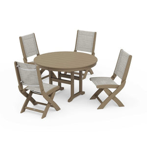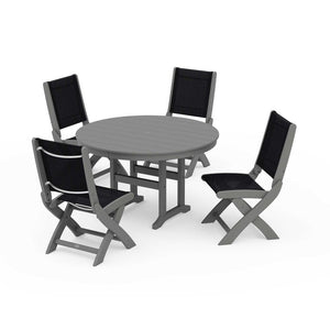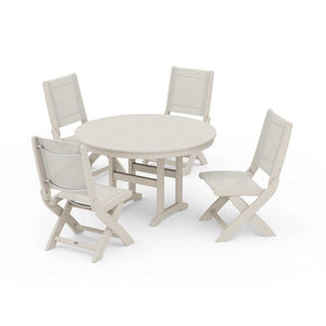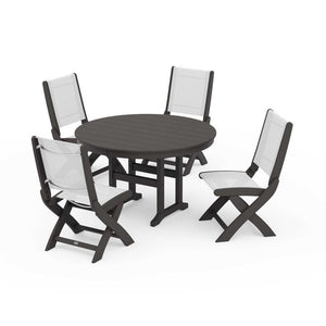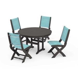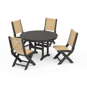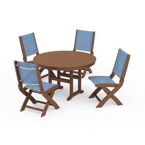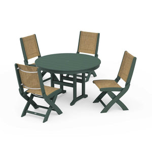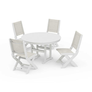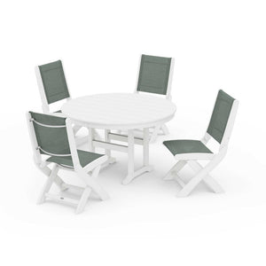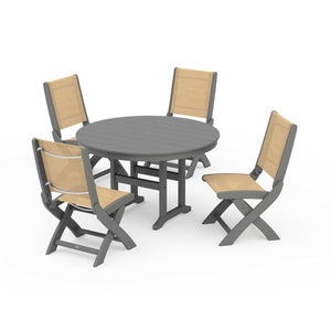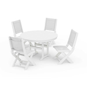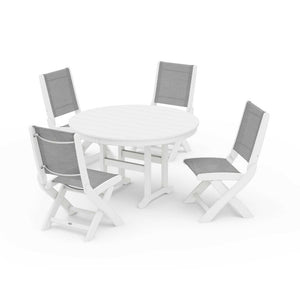 POLYWOOD® - Coastal Folding Side Chair 5-Piece Round Dining Set - PWS1358