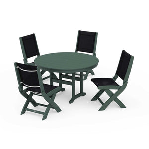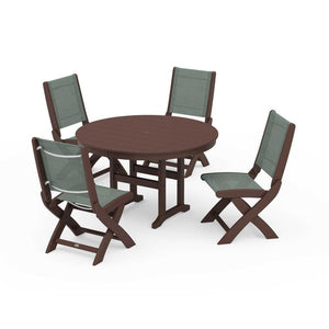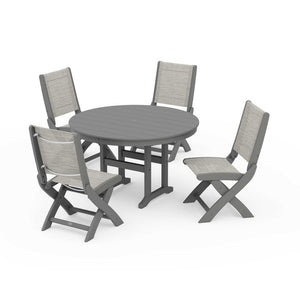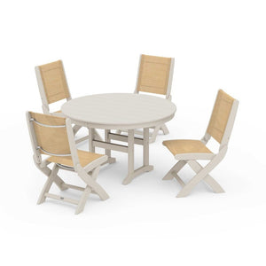POLYWOOD® Coastal Folding Side Chair 5-Piece Round Dining Set