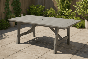The Rustic Farmhouse 39" x 75" Dining Table will elevate the look of any outdoor space with its sleek straight lines and farmhouse style design. Pair this all-weather table with dining chairs and/or the Rustic Farmhouse Backless Bench to seat up to six guests. With ample space and a sturdy frame, this durable table will be the perfect setting for your next Sunday brunch or evening meal with family and friends.