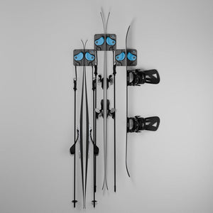 Gravity Grabber is the ultimate way to get that dreaded pile of skis and snowboards in the corner of your garage off the ground and organized. Gravity Grabber has a simple yet effective design that is easy to set up and use, designed to hold skis AND snowboards without pinching tips, keeping the natural profile, shape, and design of your gear during storage.