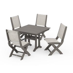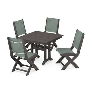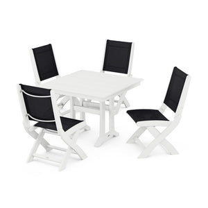 POLYWOOD® Coastal Folding Side Chair 5-Piece Farmhouse Dining Set With Trestle Legs