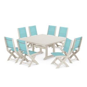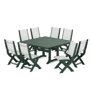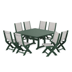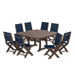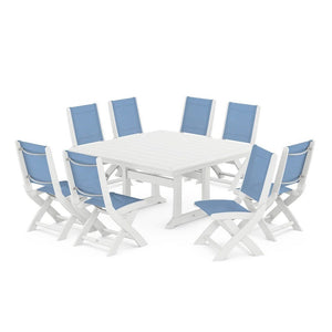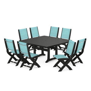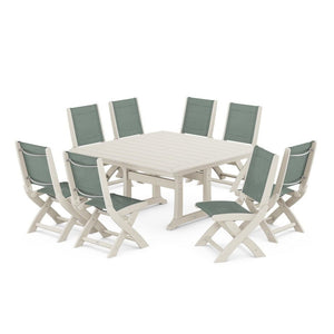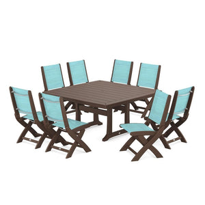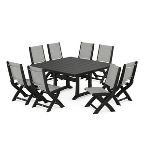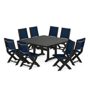 POLYWOOD® Coastal Folding Side Chair 9-Piece Dining Set with Trestle Legs