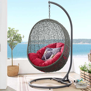Modway - Hide Outdoor Patio Swing Chair With Stand & Red Cushion