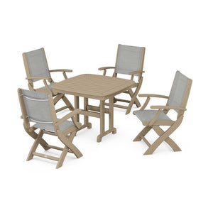 POLYWOOD® Coastal Folding Chair 5-Piece Dining Set