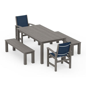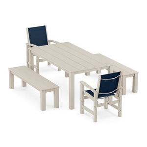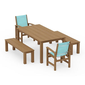 POLYWOOD® Coastal 5-Piece Parsons Dining Set with Benches